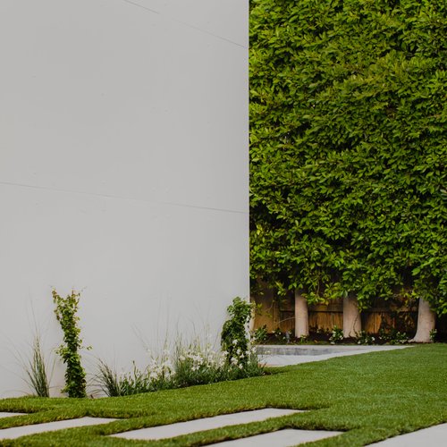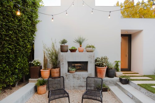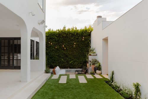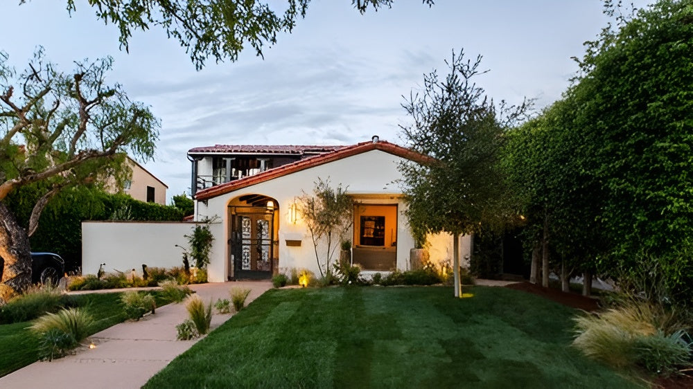 The landscaping of this Spanish home masterfully integrates modern sophistication with natural beauty, creating a warm, welcoming environment that enhances the charm and character of the residence.