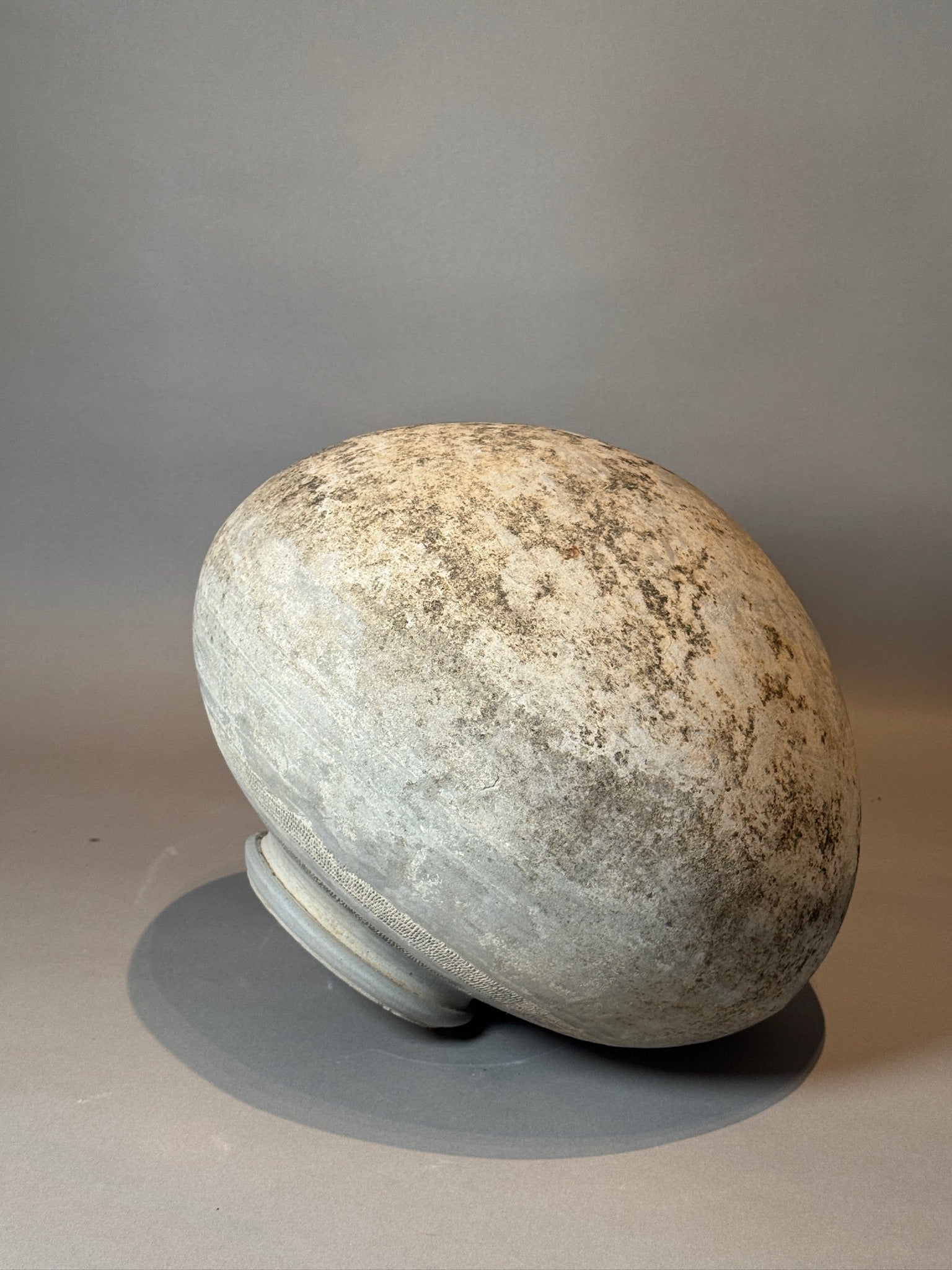 This antique French terracotta pot boasts a beautiful aged patina with a raw, unglazed surface. Its timeless design features subtle hand-carved detailing near the rim, adding character and texture. The natural wear and weathering give it a unique rustic charm, making it a versatile decorative piece. This pot would make an excellent addition to any vintage, farmhouse, or minimalist decor.