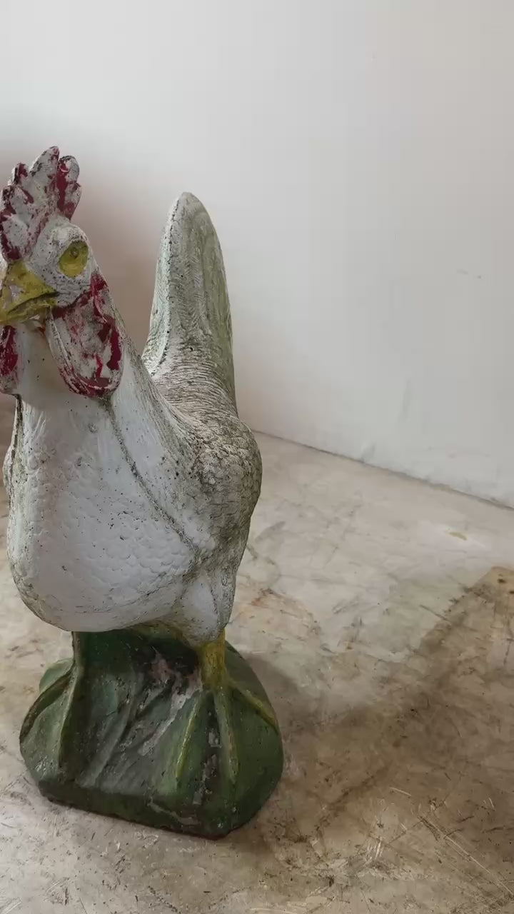 Perfect for indoor or outdoor use, this robust sculpture makes a wonderful decorative piece for gardens, patios, or farmhouse-style interiors. Whether used as a statement ornament, a focal point in a garden setting, or a collectible item, this vintage rooster is a true testament to European craftsmanship.