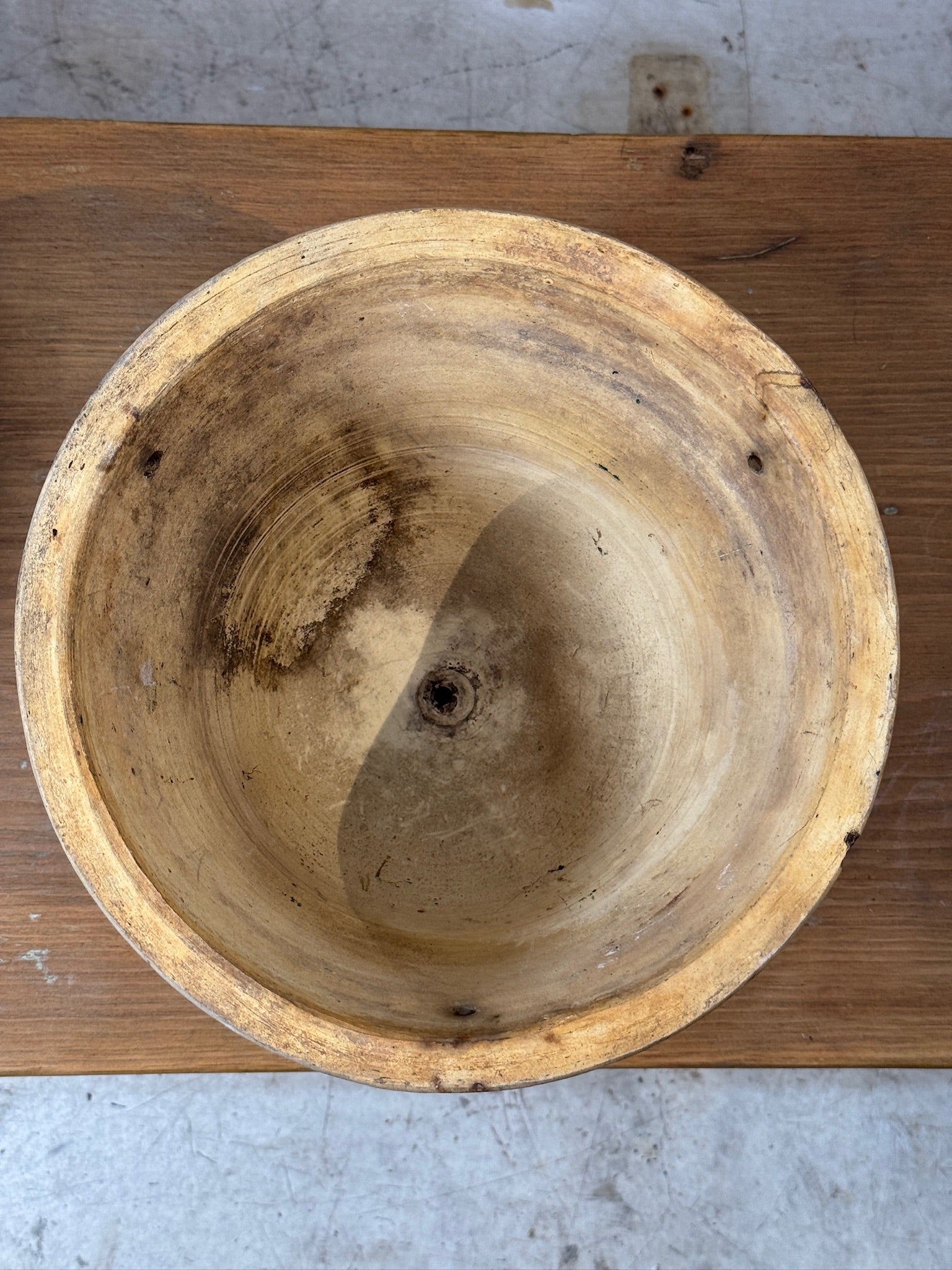 With drainage holes, this piece is both functional and decorative, making it perfect for use as a garden planter, patio accent, or an interior statement piece. The unique texture and character of the clay, aged over time, add to its appeal as a timeless artifact