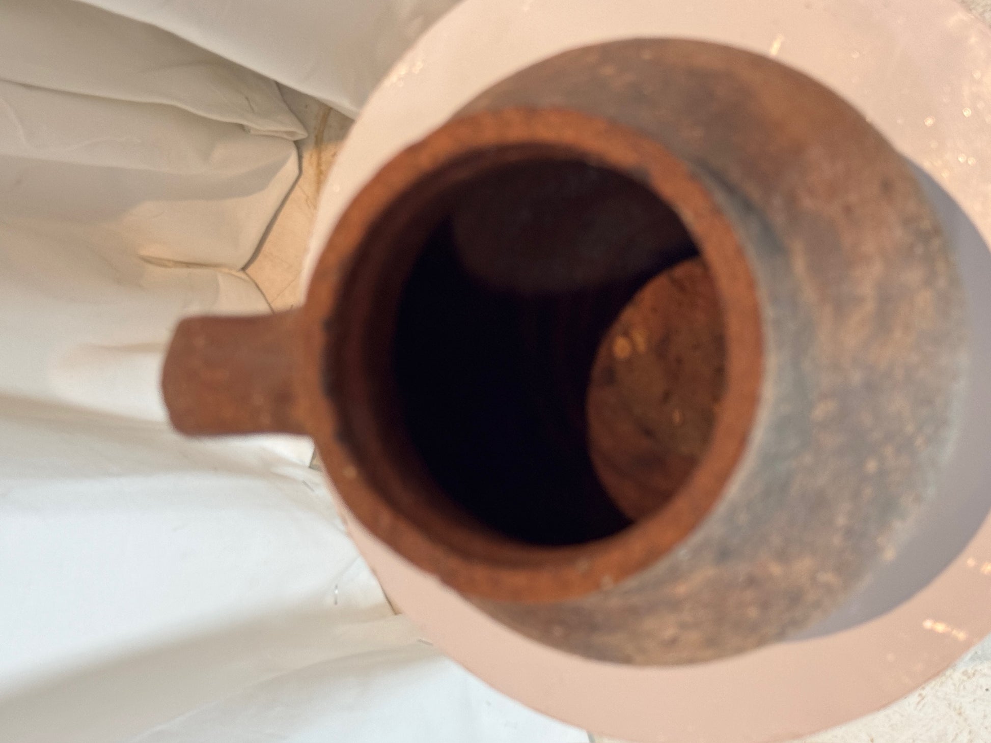 This piece was handcrafted using age-old pottery techniques, where clay was shaped by hand, kiln-fired, and left to develop a distinct natural patina over the years. Its robust and timeless design makes it a versatile decorative piece, whether displayed as a stand-alone artifact, used as a statement vase for dried floral arrangements, or integrated into a rustic, farmhouse, or Mediterranean-inspired interior.