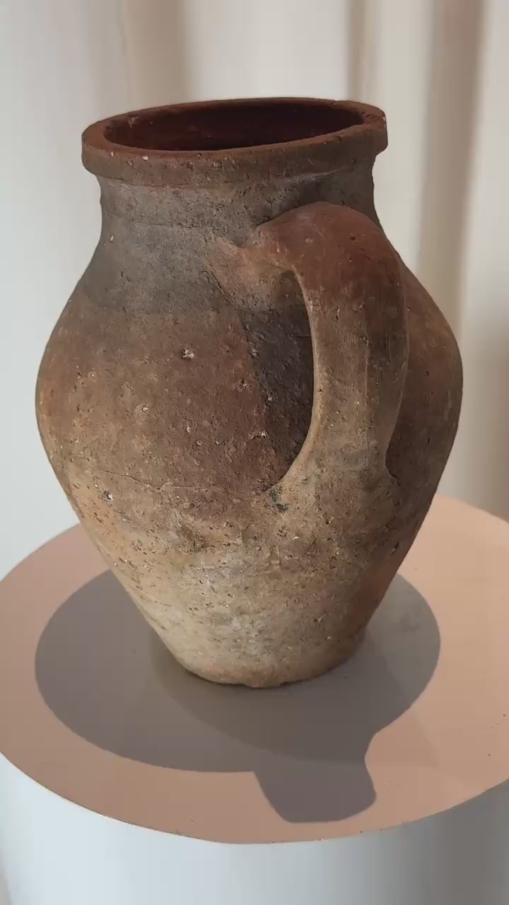 Antique Handcrafted Terracotta Pot | Rustic Amphora-Style Clay Vessel with Handle
