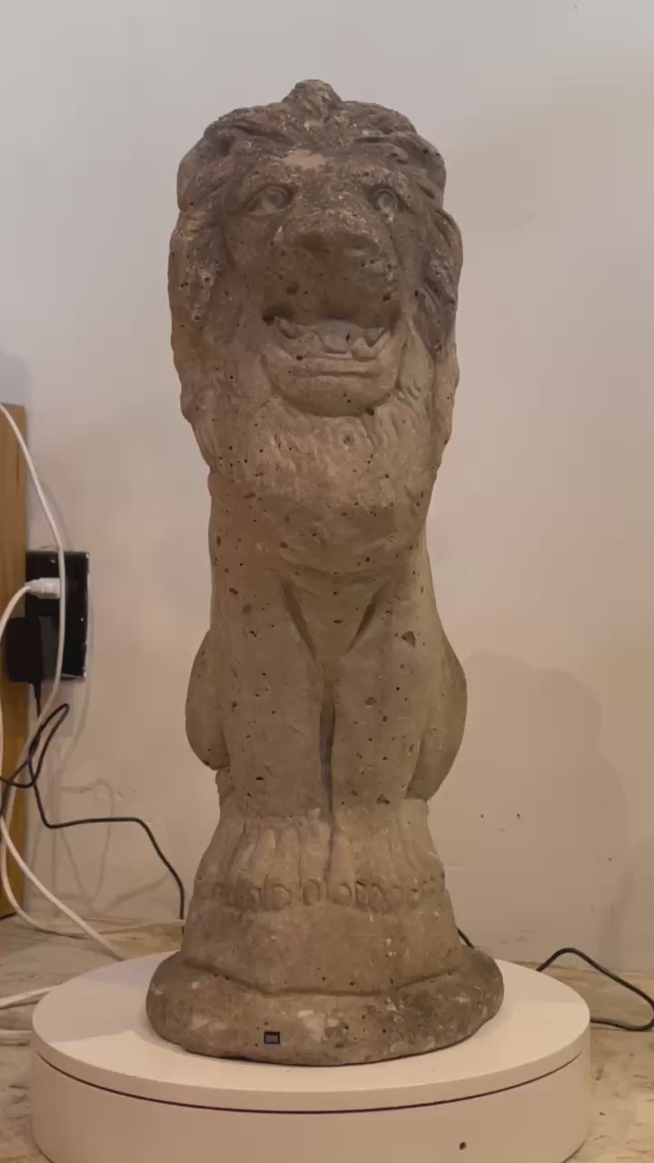 Early 20th Century Antique English Cast Stone Lion Garden Statue with Weathered Patina