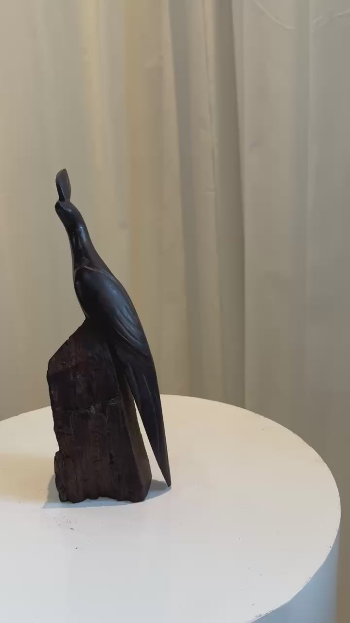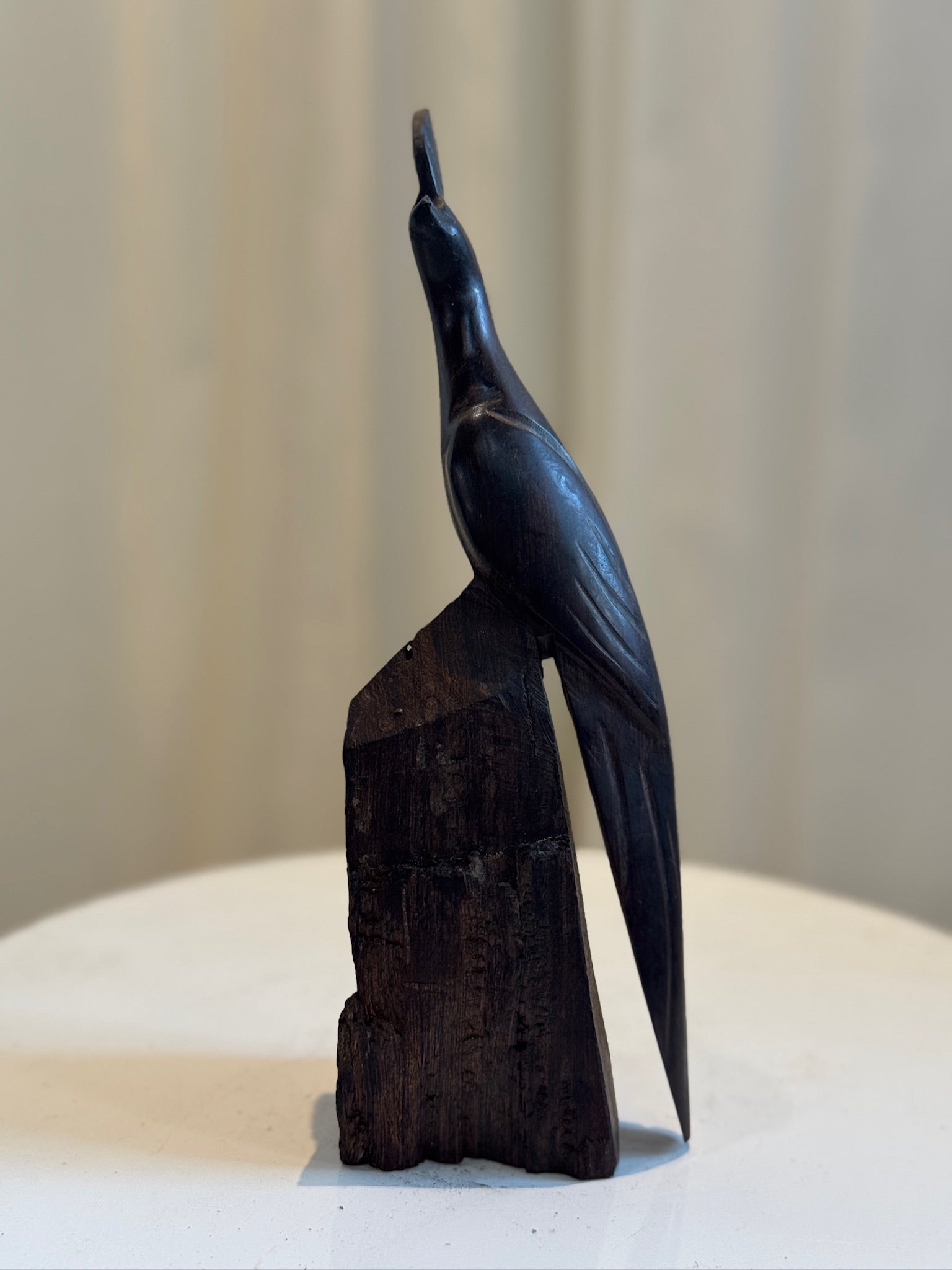 This vintage piece exhibits a timeless appeal, perfect for collectors of wildlife sculptures, rustic home décor, or folk art enthusiasts. Please note that the beak has some damage, as shown in the images, adding to its aged character.