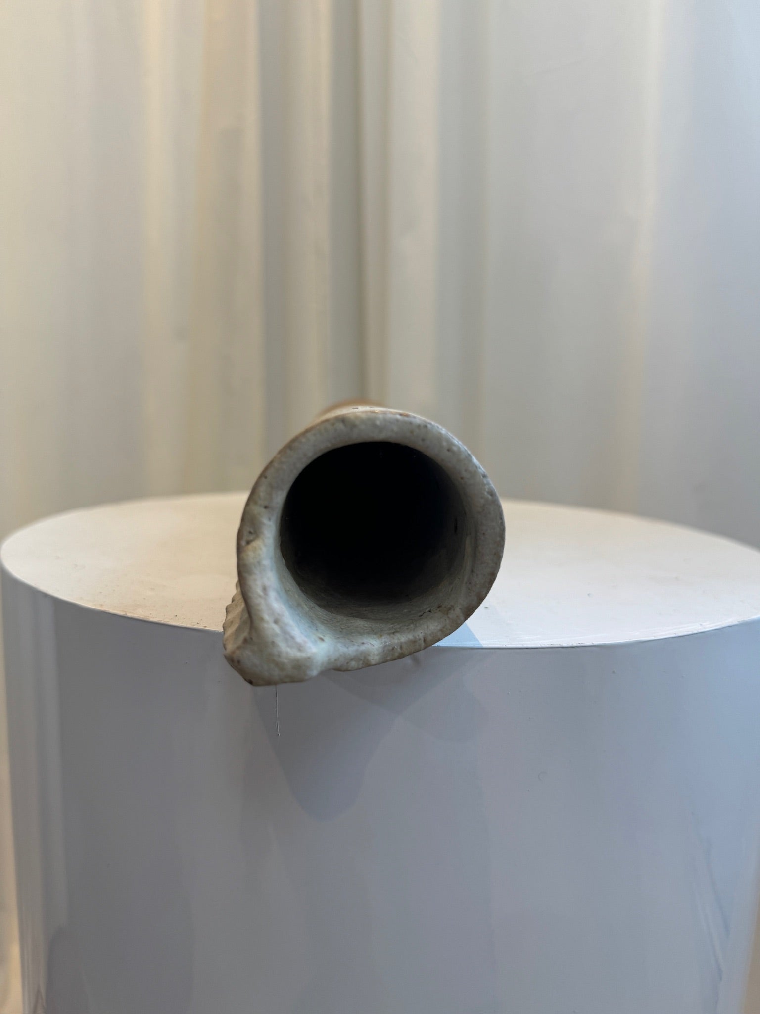 Its earthy tones, textural contrasts, and handcrafted details make it well-suited for mid-century modern, wabi-sabi, rustic, or contemporary interiors. Whether displayed as a standalone decorative object or used for dry floral arrangements, this vintage pottery vase embodies a timeless and organic beauty. Circa 1970s.